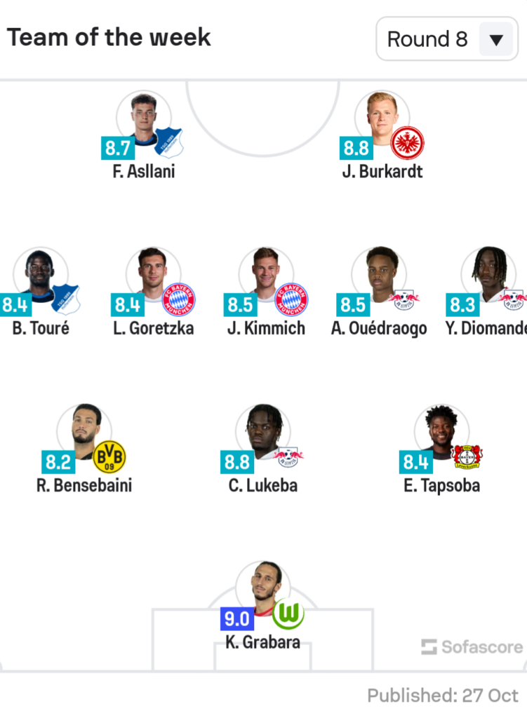Në 11-shen më të mirë të javës është përfshirë edhe Fisnik Asllani, por në një tjetër kampionat. Sulmuesi shqiptar po shkëlqen me Hofenhajmin, teksa çdo javë është shndërruar protagonist me gola dhe asiste. Paraqitja e tij e fundit është vlerësuar me notën 8.7 nga “Sofascore”./Sport Ekspres/